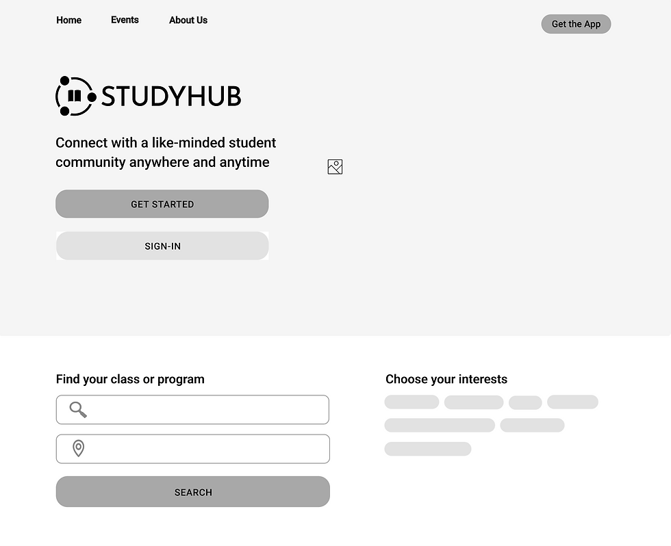 I used Balsamiq to build low fidelity wireframes of the high level navigation features in the mobile breakpoints first so I knew the minimum content needed for each screen. I had so many ideas on how to elevate the app and not just make it another social media platform but I built the main pages first. Once I had all the base features of onboarding, search, feed, and notifications/messaging laid out, I moved to designing in mid-fidelity to create the pages in between.